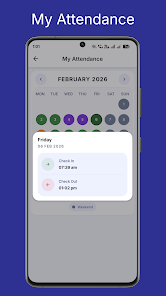 Timetable access: View the current day's schedule when system administrators publish it, so shifts, sessions and activities are clear and accessible. Attendance tracking: Monitor presence entries and review a chronological history for straightforward record keeping. Announcements and alerts: Receive timely messages and event notifications to stay informed about schedule changes and important notices. Account sign-in: Sign in with credentials supplied by your organization to access information specific to your location.