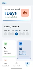 With Listeeny - English Book Reader you can convert any printed book into a practical learning tool without buying additional content. The app provides structured speaking practice with instant feedback to help learners identify pronunciation gaps, and automatic vocabulary extraction plus flashcards makes reviewing new words efficient and habit-friendly. Multiple voices and adjustable speed allow learners to tailor listening sessions, and progress tracking with sync supports a consistent study routine.
