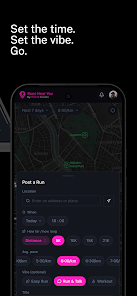 ⭐ Post a run in under a minute with location, time, distance, pace and vibe options (Easy Run, Run & Talk, Workout).