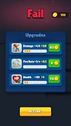 Clear progression loop: collect ammo and currency, improve your weapon, then try again with new options.